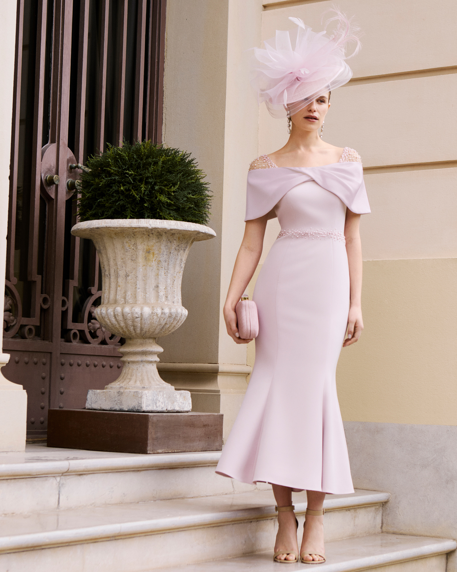 Couture Club 1G294 dress, arriving in store this Spring/Summer—an elegant new occasion wear style designed for women who appreciate refined glamour and contemporary sophistication. This stunning midi-length dress features a beautifully fitted skirt that flatters the figure, paired with a chic straight neckline for a clean, modern silhouette. Made from luxurious crepe and enhanced with delicate beading. A statement bow at the back adds a touch of couture drama, creating a memorable finish that elevates this look for weddings, formal celebrations, and special events. The included matching shawl provides both versatility and elegance, allowing you to style the outfit effortlessly from day to evening.