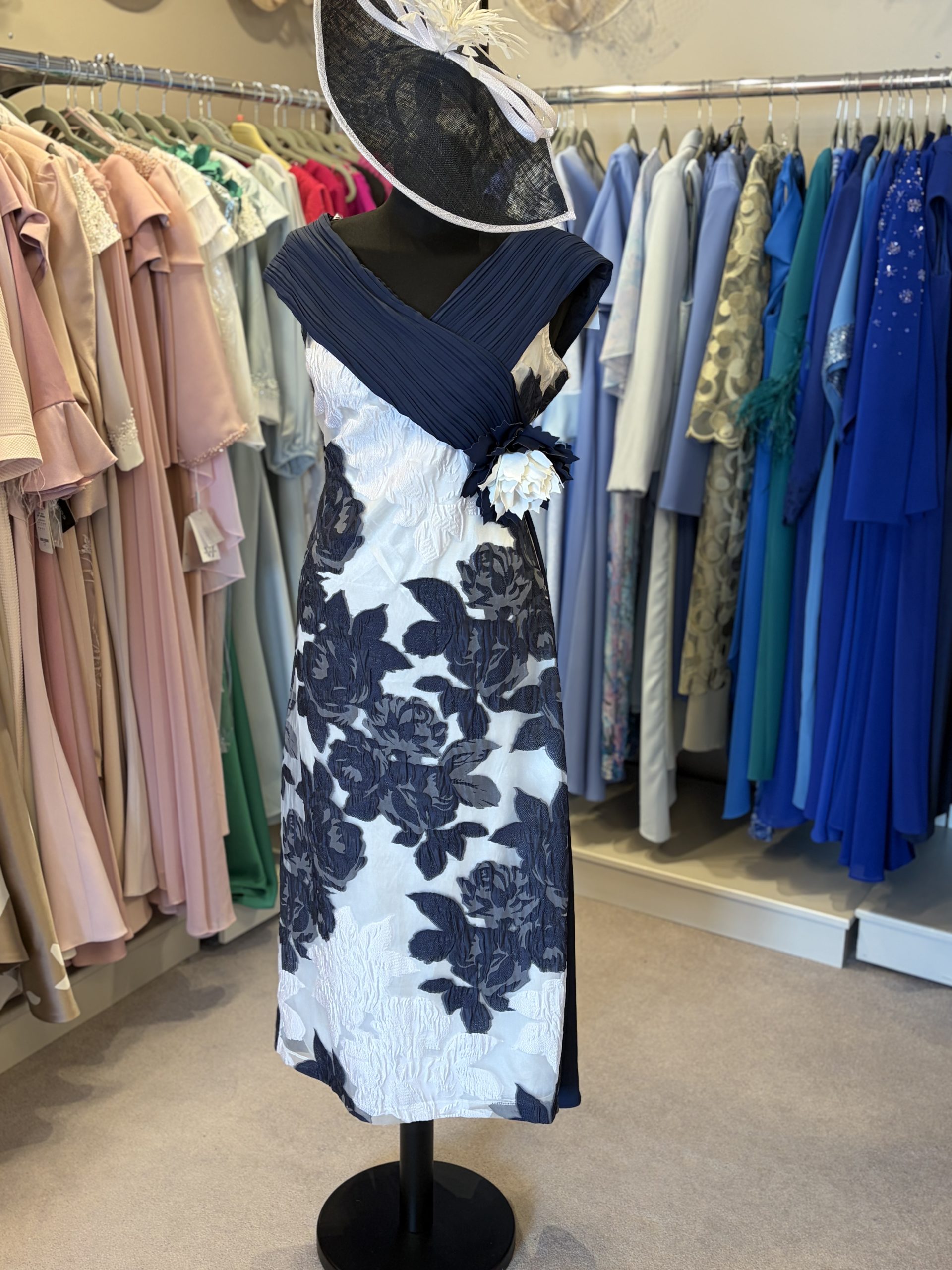 Seren 2384 is an elegant midi occasion dress featuring a flattering silhouette, defined waist, and timeless sophisticated styling.